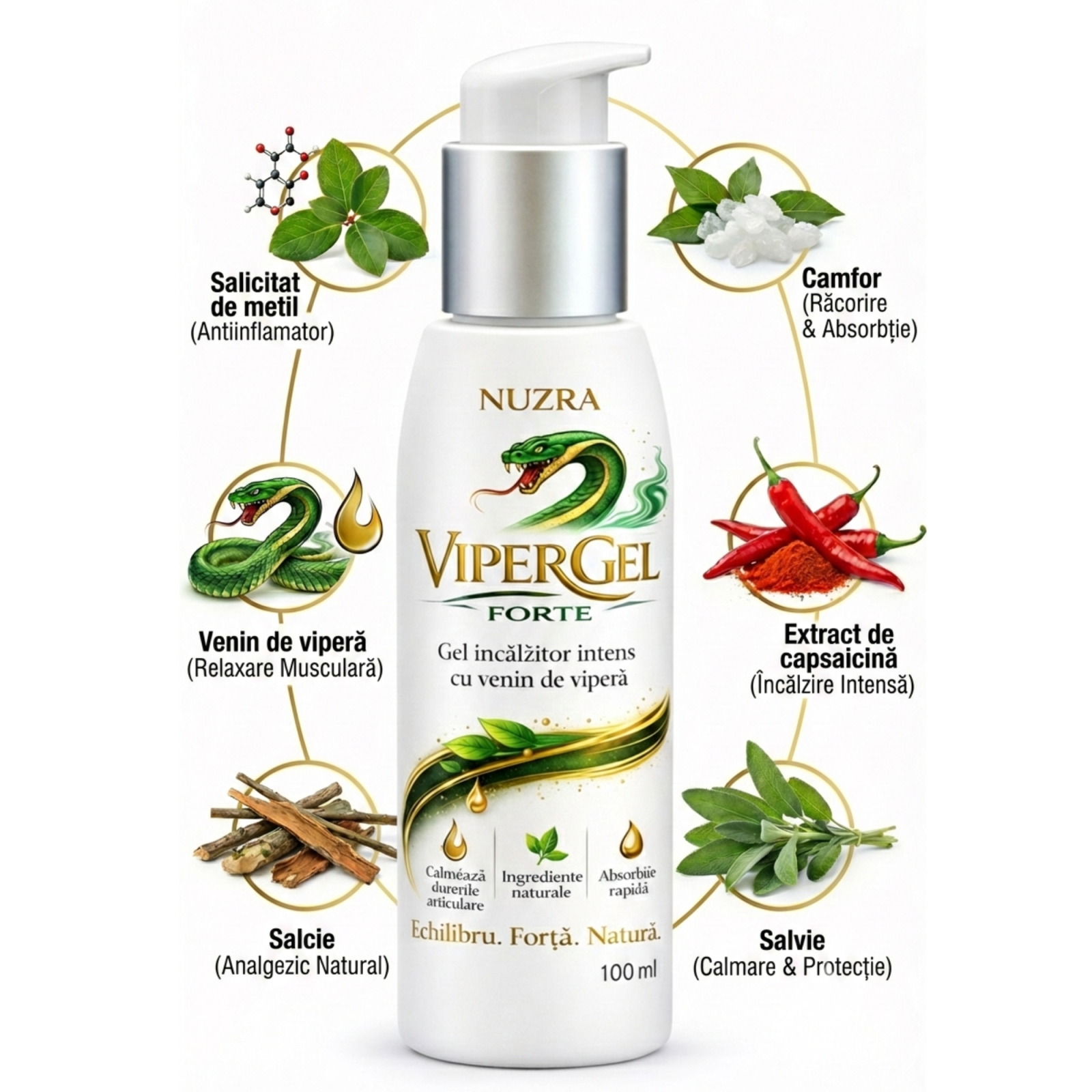 Formula sa combină ingrediente naturale cu venin de viperă pentru a susține relaxarea musculară, mobilitatea articulațiilor și confortul zilnic.